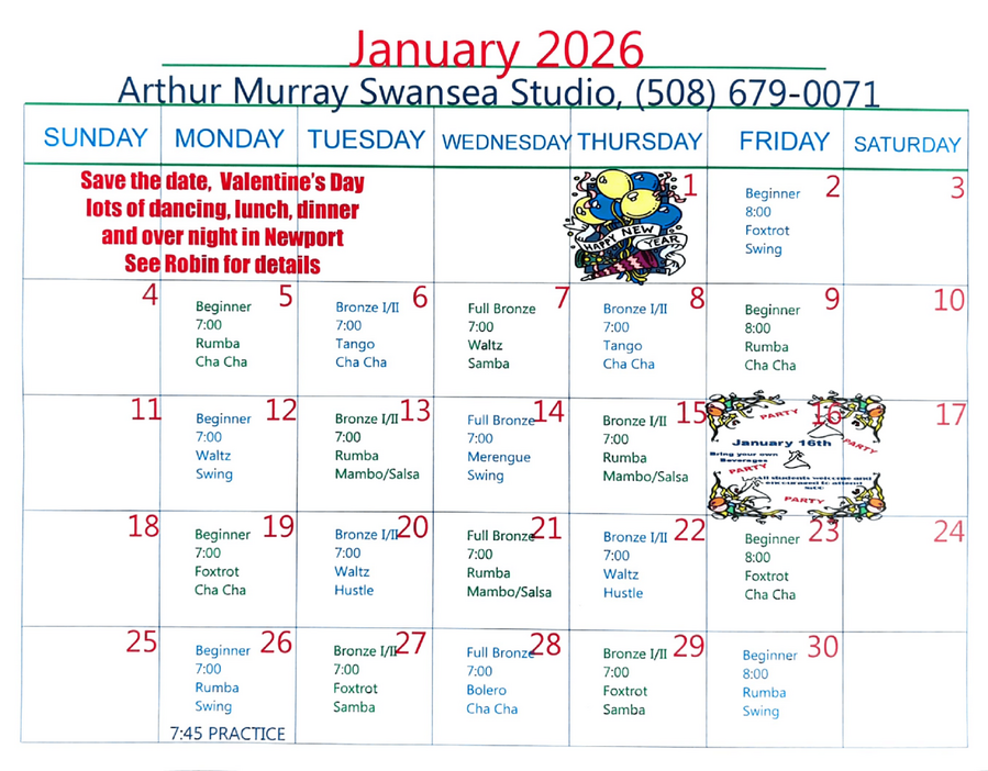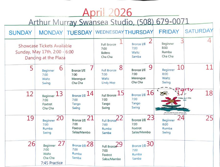 Check here to stay up to date on our schedule for the month. You can find dance classes to join, plan for our monthly dance party held here in the studio and look forward to our showcases we put on for students at local venues in the area. There's something for everyone so feel free to give us a call if you're interested at checking availability.